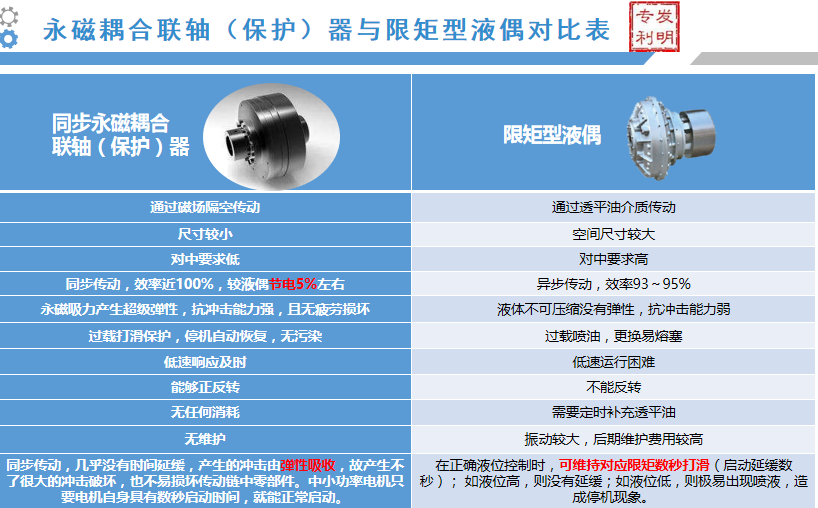 传动效率由高到低分别为:同步永磁超级弹性联轴器(100%)>限矩型液偶(96%)>涡流永磁联轴器(91%)