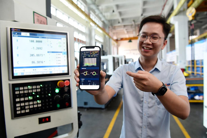 企业技术人员通过手机与机床链接监测数据,便可轻松操作机器。(图片来自信息公开网站)