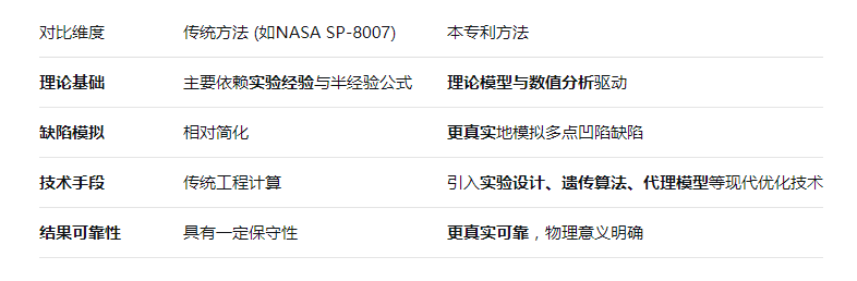 一种轴压筒壳结构承载力...核心在于提出了一种更科学、可靠的评估薄壁筒壳结构承载能力的方法。该方法隶属于航空航天及建筑结构主承力薄壁构件的稳定性校核技术领域。该方法区别于传统的、主要依赖实验经验的NASASP-8007规范。通过施加可控的径向集中力来模拟凹陷缺陷,并利用先进的数值分析和优化算法(如遗传算法、代理模型),系统性地寻找最不利的缺陷分布,从而确定承载力折减因子。这使其物理意义更明确,结果也更真实可靠。在航空航天等领域,结构设计追求极致的轻量化,但薄壁结构对初始缺陷非常敏感,传统方法保守或依赖大量试验。该方法提供了一种先进的数值评估手段,有助于在保证安全的前提下,优化结构设计,提升性能。
